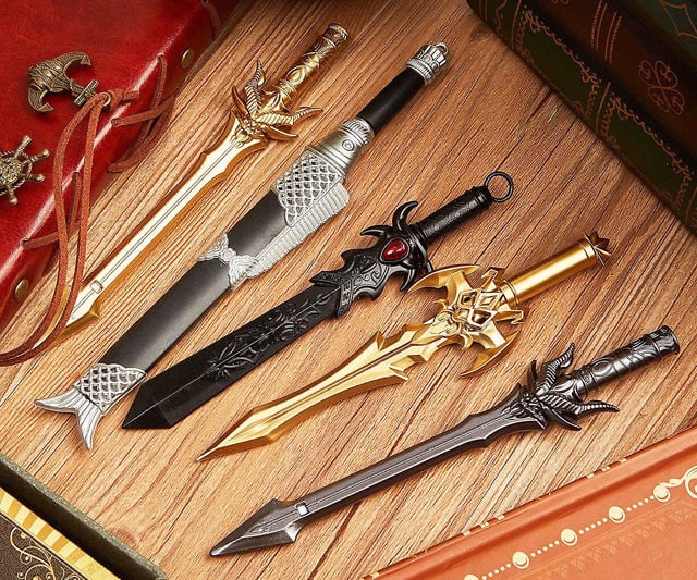 Make writing feel heroic with these pens styled like ornate swords; display them sheathed when not in use.