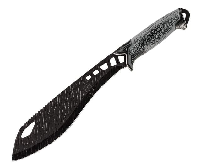 Tackle any obstruction with unyielding effectiveness employing the Gerber Versafix Pro, a clever mashup of a machete and a knife. This fixed blade boasts a forward-weighted construction, minimizing the exertion required for slicing, complemented by a grip engineered to lessen user exhaustion.