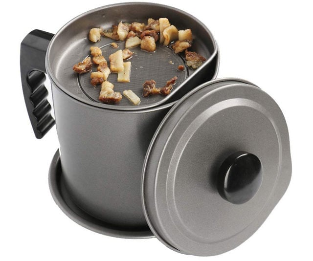 That delectable bacon fat is far too precious to discard! Capture every drop of that culinary treasure with this dedicated bacon grease repository. Both the container and its accompanying strainer are crafted from durable wrought iron, then treated with a specialized non-stick finish designed to thwart rust and maintain your rendered fat in impeccable condition.