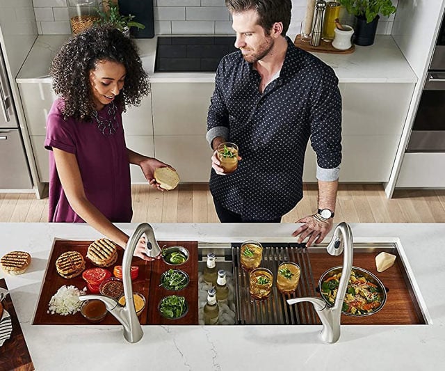 Maximize your kitchen's potential with an upgrade to this dual-level Workstation Kitchen Sink. This cleverly engineered sink incorporates a suite of integrated functionalities intended to assist you through every stage of preparing a meal.