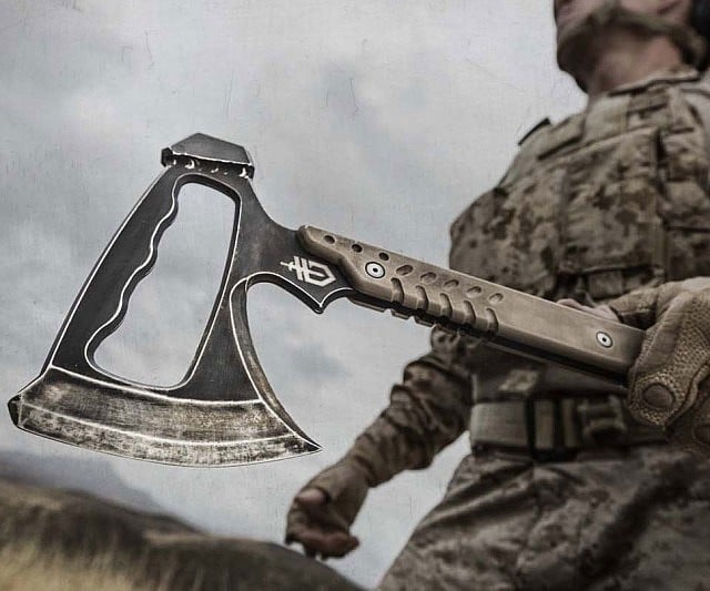 This Tactical Tomahawk ensures your foes are utterly outmatched, held securely as it is in your unflinching grip. Featuring a wickedly keen axe head, robust steel construction, and a handy crowbar integrated at the base, consider this your essential tool for extracting yourself from any tight spot.