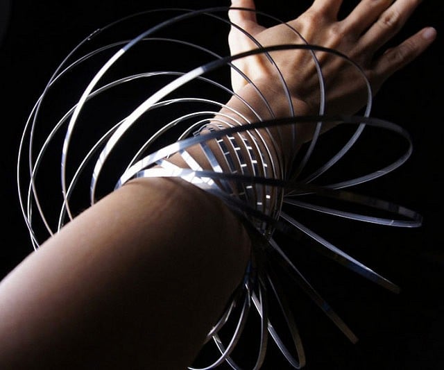 A mesmerizing loop of motion, this collapsible metal spring flows up and down your arms in one continuous ripple, offering soothing tactile entertainment anywhere you go.