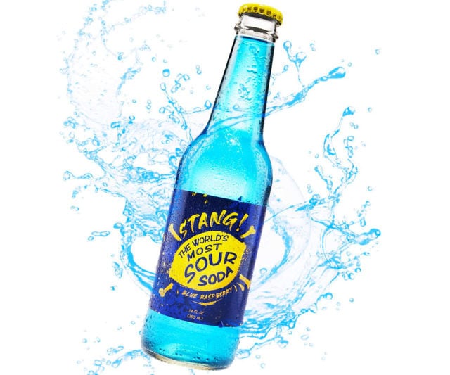 Experience the ultimate pucker with Stang!, the world's most sour soda, offering an intensely tart blue-raspberry flavor that will satisfy your craving for the extreme. This outrageously sour beverage boasts a staggering twenty times the sour power of any competing drink available.