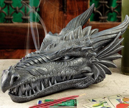 Need to maintain that rugged image while ensuring your lair smells delightful? This Dragon Skull Incense Burner is your solution; the incense smoke escapes through the dragon's nostrils, guaranteeing your dwelling both smells and looks fantastic.