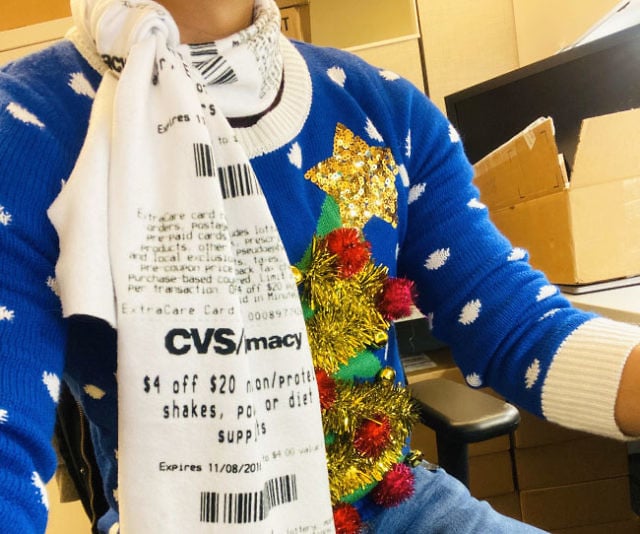 Generate chuckles everywhere you venture by accessorizing with this amusing CVS receipt neckwear. This incredibly plush, wrap-style scarf precisely mimics an authentic CVS receipt and measures about 8 inches in width by 59 inches in length, which is approximately the actual length of a typical CVS receipt.