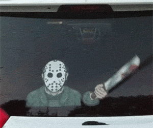 Inject a bit of playful fright into your daily drive with this Jason rear wiper blade decal, ensuring your vehicle participates in the seasonal fun. As your wiper sweeps, the iconic, seemingly unstoppable Jason Voorhees appears to rhythmically swing his infamous, blood-splattered machete, making this an essential accessory for the discerning horror cinema enthusiast.