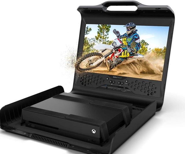 Bring console gaming anywhere. This 1080p monitor attaches to Xbox or PlayStation systems and opens like a briefcase, offering a crisp screen and stereo sound on the go.