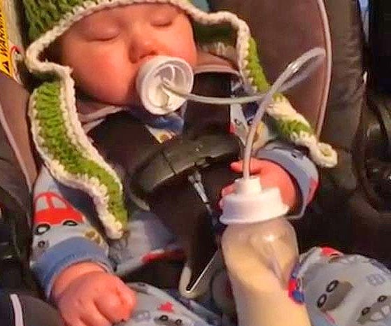 Feed your little one on the go with this hands‑free bottle system. The BPA‑ and lead‑free bottle rests upright while a tube delivers milk to a comfortable nipple, letting babies control the flow and freeing parents from balancing act pit stops.
