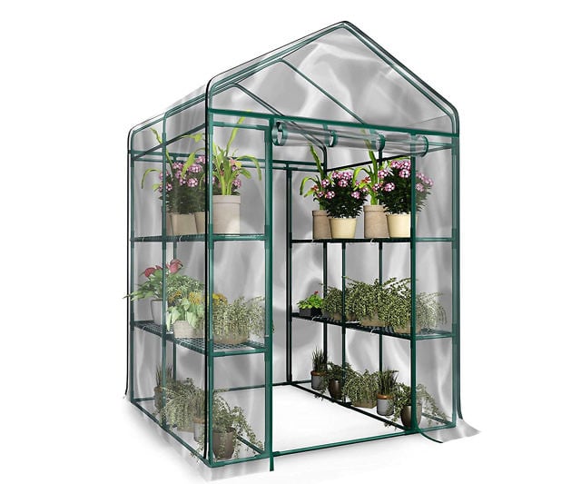 Extend your growing season with this walk‑in greenhouse. Tool‑free assembly, eight sturdy shelves and a clear PVC cover let you cultivate plants all year long while keeping them protected from the elements.