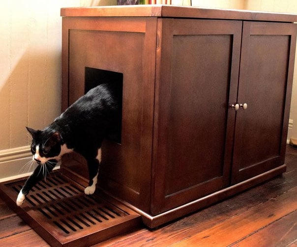 Hide your cat’s business in a stylish wooden cabinet that doubles as a side table. With ventilation slots and a hinged door for cleaning, it keeps litter out of sight and matches your décor better than any plastic pan.