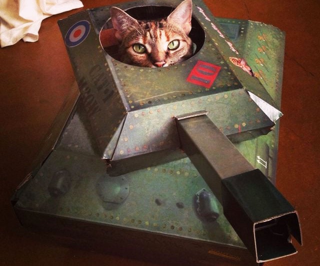 Let your cat feel like the king of the battlefield with a cardboard tank playhouse. Easy to assemble and featuring a rotatable turret and peek holes, it satisfies cats’ need to explore while providing endless photo ops for you.