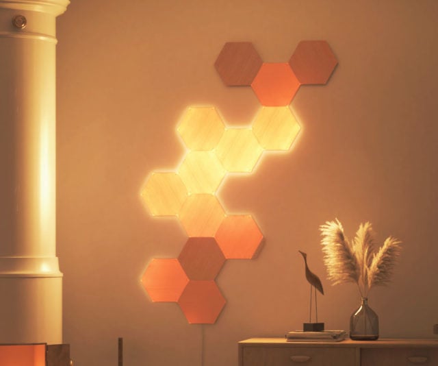 Add warm, natural texture to your smart lights with modular wooden panels that connect to existing setups and glow in customizable colors.