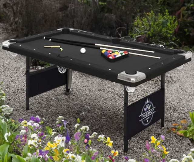 Set up a full-sized game of pool anywhere with a foldable table that assembles quickly, plays smoothly, and tucks away neatly when the competition is over.