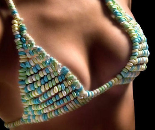 Add playful sweetness to the bedroom with a candy bra made entirely of edible beads, blending flirtation and nostalgia into one sugary accessory.
