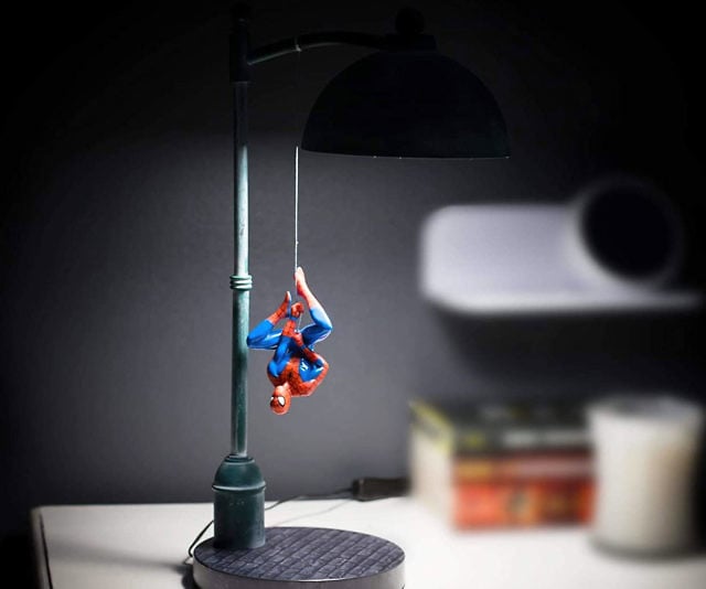 Hold onto your webs, folks, because everyone's favorite friendly neighborhood hero is swinging in to rescue you from the gloom with this absolutely charming Spider-Man streetlight lamp! This isn't just any old light source; it's a marvelously crafted piece of decor, cleverly styled as a miniature 16-inch tall street light. And the best part? A pint-sized, perfectly posed Spidey is dangling right from the top bar, making sure your room stays illuminated and infinitely cooler.